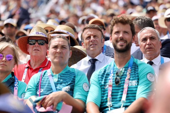 Exclusif - Prix Spécial - No Web - Emmanuel Macron assiste aux épreuves de judo lors des Jeux Olympiques de Paris2024 (JO)