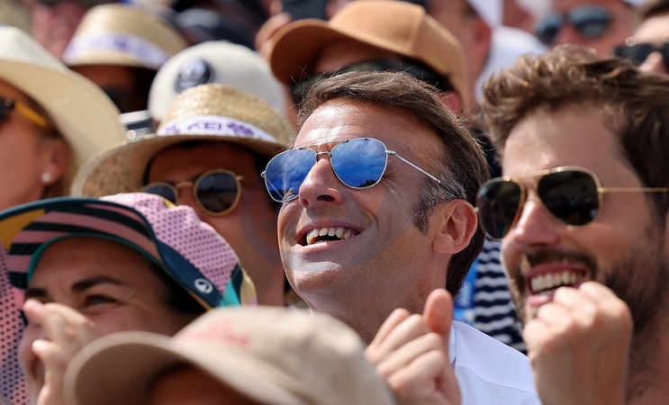 Exclusif - Prix Spécial - No Web - - Emmanuel Macron assiste aux épreuves d'équitation au Château de Versailles lors des Jeux Olympiques de Paris2024 (JO) le 2 aout 2024. © Dominique Jacovides-Pierre Perusseau/Bestimage Exclusive - For Germany call for price - Emmanuel Macron attends the equestrian events at the Palace of Versailles during the Paris2024 Olympic Games (Olympics) on August 2, 2024.