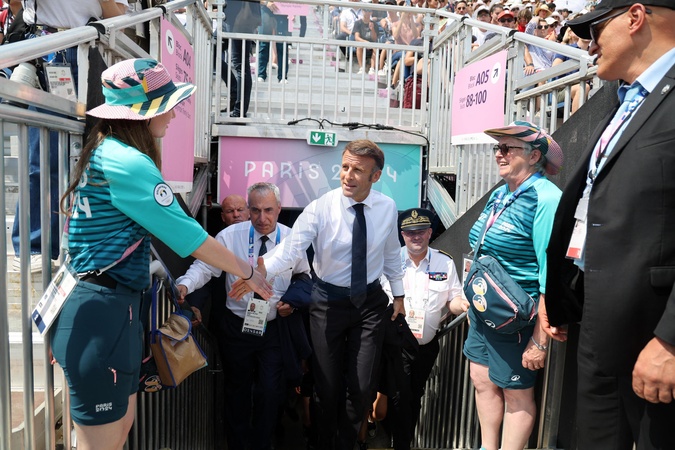 Exclusif - Prix Spécial - No Web - - Emmanuel Macron assiste aux épreuves d'équitation au Château de Versailles lors des Jeux Olympiques de Paris2024 (JO) le 2 aout 2024. © Dominique Jacovides-Pierre Perusseau/Bestimage Exclusive - For Germany call for price - Emmanuel Macron attends the equestrian events at the Palace of Versailles during the Paris2024 Olympic Games (Olympics) on August 2, 2024.
