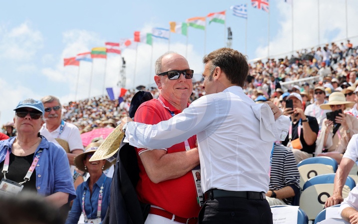 Exclusif - Prix Spécial - No Web - Le Prince Albert II de Monaco et Emmanuel Macron - Emmanuel Macron assiste aux épreuves d'équitation au Château de Versailles lors des Jeux Olympiques de Paris2024 (JO) le 2 aout 2024. © Dominique Jacovides-Pierre Perusseau/Bestimage Exclusive - For Germany call for price - Emmanuel Macron attends the equestrian events at the Palace of Versailles during the Paris2024 Olympic Games (Olympics) on August 2, 2024.