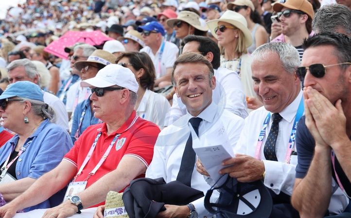 Exclusif - Prix Spécial - No Web - Emmanuel Macron assiste aux épreuves d'équitation au Château de Versailles lors des Jeux Olympiques de Paris2024 (JO)