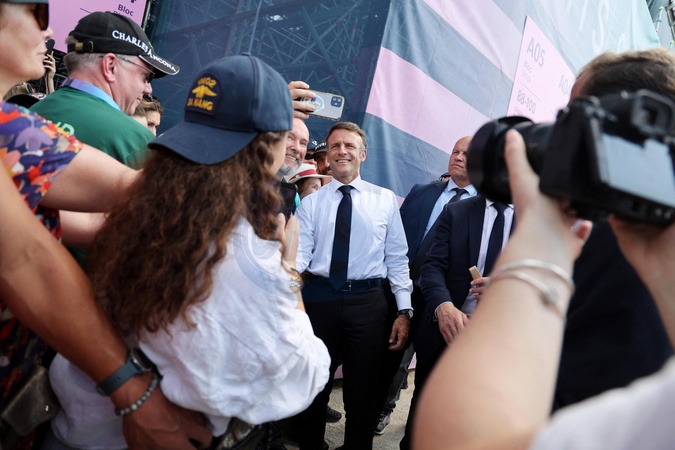 Exclusif - Prix Spécial - No Web - - Emmanuel Macron assiste aux épreuves d'équitation au Château de Versailles lors des Jeux Olympiques de Paris2024 (JO) le 2 aout 2024. © Dominique Jacovides-Pierre Perusseau/Bestimage Exclusive - For Germany call for price - Emmanuel Macron attends the equestrian events at the Palace of Versailles during the Paris2024 Olympic Games (Olympics) on August 2, 2024.