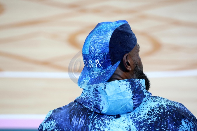 LeBron James lors de la victoire des Etats-Unis sur le Nigeria (88-74) pour les quarts de finale du tournoi de basket féminin lors des Jeux Olympiques de Paris 2024 (JO) , à l'Arena Bercy à Paris, France, le 7 août 2024. © Jacovides-Perusseau/Bestimage Personalities at the USA / Nigeria women's basketball match during the Paris 2024 Olympic Games on august 7th 2024