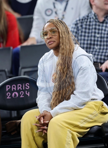 Savannah, la femme de LeBron James lors de la victoire des Etats-Unis sur le Nigeria (88-74) pour les quarts de finale du tournoi de basket féminin lors des Jeux Olympiques de Paris 2024 (JO) , à l'Arena Bercy à Paris, France, le 7 août 2024. © Jacovides-Perusseau/Bestimage Personalities at the USA / Nigeria women's basketball match during the Paris 2024 Olympic Games on august 7th 2024