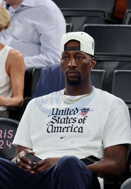 Bam Adebayo lors de la victoire des Etats-Unis sur le Nigeria (88-74) pour les quarts de finale du tournoi de basket féminin lors des Jeux Olympiques de Paris 2024 (JO) , à l'Arena Bercy à Paris, France, le 7 août 2024. © Jacovides-Perusseau/Bestimage Personalities at the USA / Nigeria women's basketball match during the Paris 2024 Olympic Games on august 7th 2024