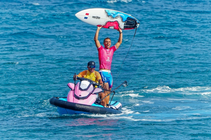 Kauli Vaast - médaille d'or - Epreuve de surf lors des Jeux Olympiques de Paris 2024 (JO) à Teahupoo, Tahiti, le 5 août 2024. © Bestimage Surfing event during the Paris 2024 Olympic Games (Olympics) in Teahupoo, Tahiti, on August 5, 2024.
