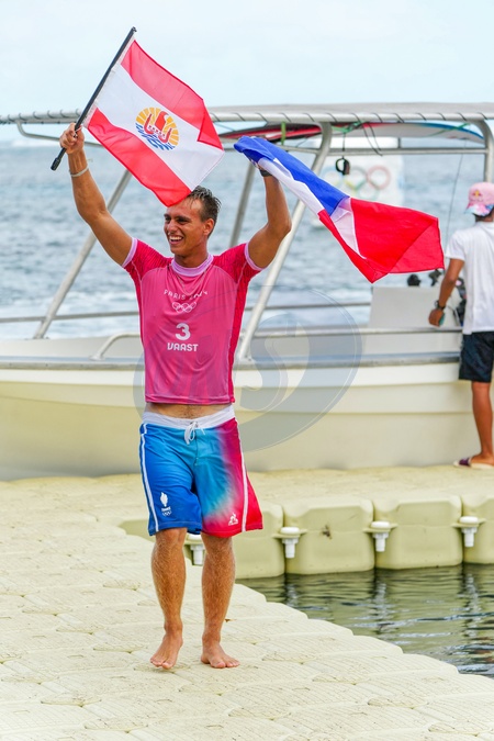 Kauli Vaast - médaille d'or - Epreuve de surf lors des Jeux Olympiques de Paris 2024 (JO) à Teahupoo, Tahiti, le 5 août 2024. © Bestimage Surfing event during the Paris 2024 Olympic Games (Olympics) in Teahupoo, Tahiti, on August 5, 2024.