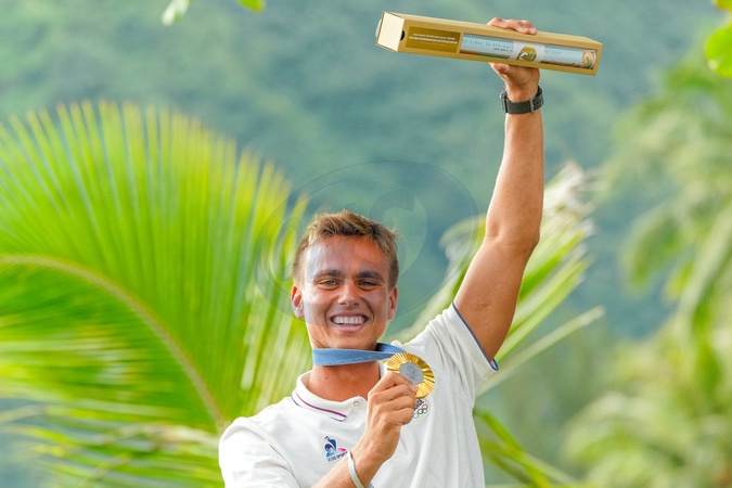 Kauli Vaast - médaille d'or - Epreuve de surf lors des Jeux Olympiques de Paris 2024 (JO) à Teahupoo, Tahiti, le 5 août 2024. © Bestimage Surfing event during the Paris 2024 Olympic Games (Olympics) in Teahupoo, Tahiti, on August 5, 2024.