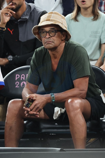 Yannick Noah - Les célébrités en tribunes pendant l'épreuve de basketball de Demi-Finale opposant la France à l'Allemagne lors des Jeux Olympiques de Paris 2024 (JO) à l'Arena Bercy, à Paris, France, le 8 août 2024. © Jacovides-Perusseau/Bestimage Celebrities in the stands during the Semi-Final basketball match between France and Germany during the Paris 2024 Olympic Games (Olympics) at the Arena Bercy in Paris, France, August 8, 2024.