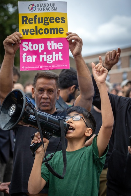 Walthamstow, London, UK. Wednesday 7th August 2024.Thousands of people including local residents came together in Walthamstow Central for a large unity rally outside Waltham Forest Immigration Bureau. The Community came together to defend the immigration bureau as there was a threat that the English defense league (EDL) were going to turn up to the immigration bureau., Credit:Abdullah Bailey / Avalon