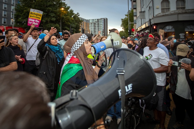 Walthamstow, London, UK. Wednesday 7th August 2024.Thousands of people including local residents came together in Walthamstow Central for a large unity rally outside Waltham Forest Immigration Bureau. The Community came together to defend the immigration bureau as there was a threat that the English defense league (EDL) were going to turn up to the immigration bureau., Credit:Abdullah Bailey / Avalon