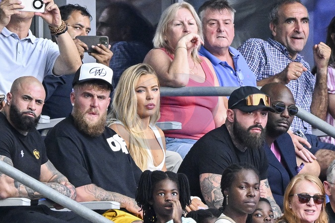 Jake Paul et sa compagne Jutta Leerdam - Les célébrités assistent aux épreuves d'athlétisme lors des Jeux Olympiques de Paris2024 (JO), le 8 août 2024. © Perusseau-Jacovides / Bestimage Celebrities attend the athletics events during the Paris 2024 Olympic Games (Olympics) on August 8, 2024.