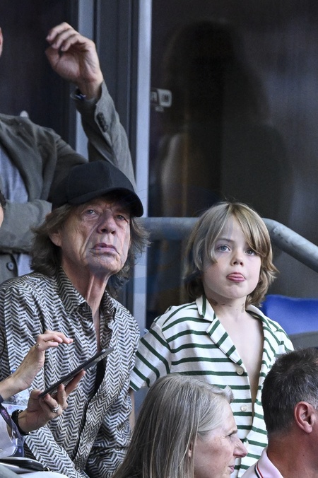 Mick Jagger et son fils Deveraux - Les célébrités assistent aux épreuves d'athlétisme lors des Jeux Olympiques de Paris2024 (JO), le 8 août 2024. © Perusseau-Jacovides / Bestimage Celebrities attend the athletics events during the Paris 2024 Olympic Games (Olympics) on August 8, 2024.
