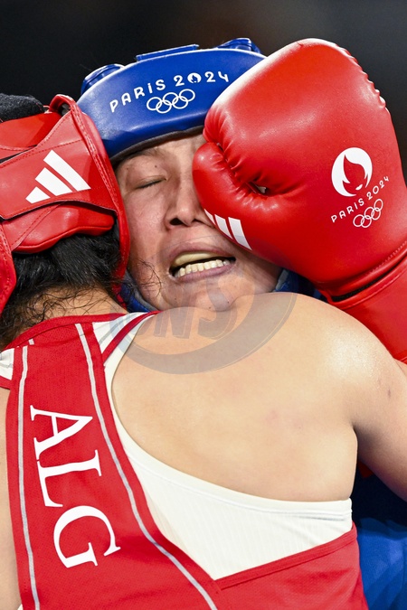 Imane Khelif devient championne olympique en -66 kg aux JO de Paris 2024, le 9 aout 2024. L'Algérienne Imane Khelif, dont la féminité a été remise en question, devient championne olympique en - 66 kg, en battant la Chinoise Y.Liu, en finale aux Jeux Olympiques de Paris2024 (JO), le 9 août 2024. © Jacovides-Perusseau / Bestimage Algerian Imane Khelif becomes Olympic champion in -66 kg at the Paris2024 Olympic Games (JO), on August 9th, 2024.