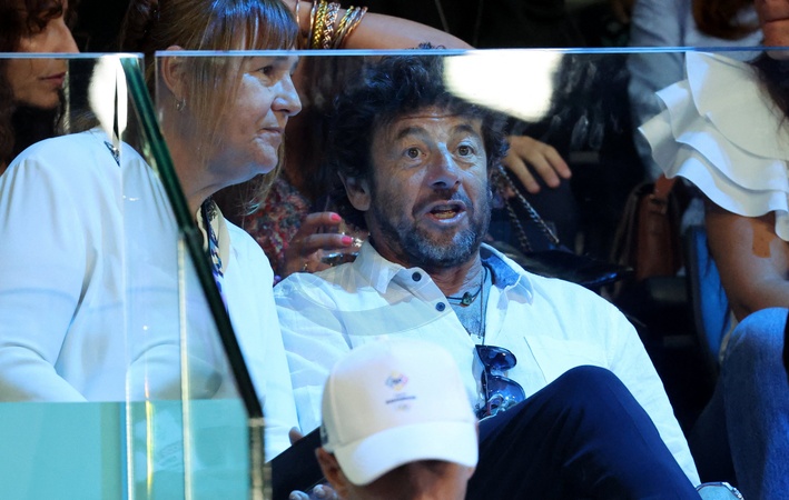 Patrick Bruel - Les célébrités en tribunes pendant la finale de basketball opposant les Etats-Unis à la France (98-87) lors des Jeux Olympiques de Paris 2024 (JO) à l'Arena Bercy, à Paris, France, le 10 août 2024. © Jacovides-Perusseau/Bestimage Celebrities in the stands during the Final basketball match between US and France during the Paris 2024 Olympic Games (Olympics) at the Arena Bercy in Paris, France, August 10, 2024.