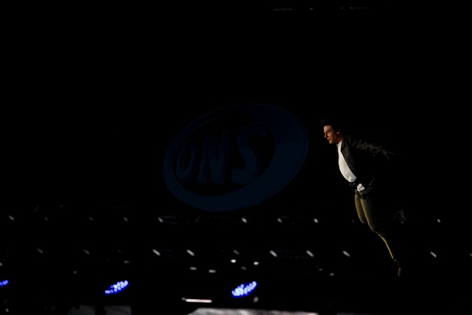 Tom Cruise, accroché à un fil, descend du toit du stade de France pour prendre le drapeau olympique
