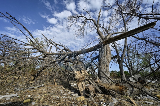 MYRNOHRAD, UKRAINE - AUGUST 7, 2024 - Trees broken by the shock wave are near the Myrnohrad Infectious Diseases Hospital destroyed by a Russian FAB-500 bomb on July 27, 2024, Myrnohrad, Donetsk Region, eastern Ukraine., Credit:Dmytro Smolienko / Avalon