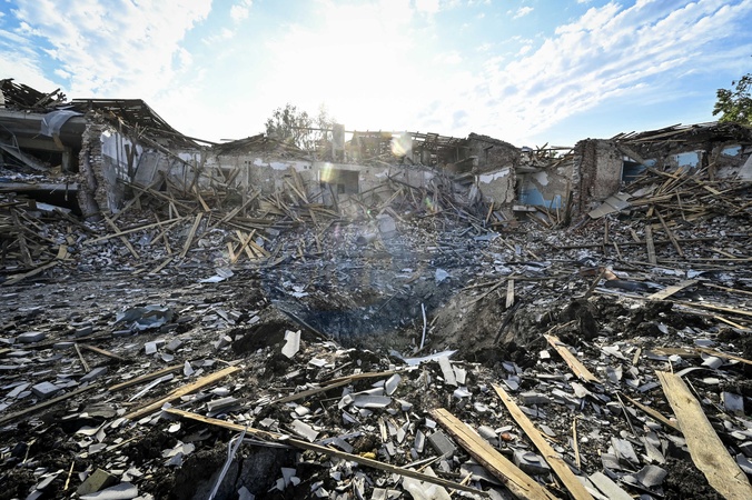 MYRNOHRAD, UKRAINE - AUGUST 7, 2024 - The crater from a Russian FAB-500 bomb which destroyed the Myrnohrad Infectious Diseases Hospital on July 27, 2024, is seen in the ground, Myrnohrad, Donetsk Region, eastern Ukraine., Credit:Dmytro Smolienko / Avalon