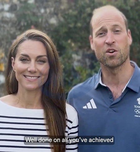 Le prince William, prince de Galles, et Catherine (Kate) Middleton, princesse de Galles, David Beckham félicitent les athlètes britanniques dans une vidéo, à l'issue les Jeux Olympiques de Paris2024 (JO)