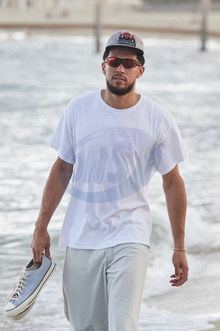 Devin Booker i Kevin Durant, gwiazdy amerykańskiej drużyny koszykówki, mistrzów olimpijskich, spacerują z przyjaciółmi po plaży w St Tropez.