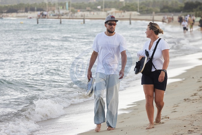 Exclusif - Devin Booker et Kevin Durant les stars de la Team USA de basket-ball championne olympique se baladent sur une plage de St Tropez avec des amies