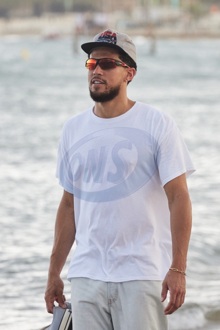 Devin Booker i Kevin Durant, gwiazdy amerykańskiej drużyny koszykówki, mistrzów olimpijskich, spacerują z przyjaciółmi po plaży w St Tropez.