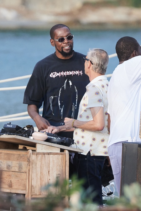 Devin Booker i Kevin Durant, gwiazdy amerykańskiej drużyny koszykówki, mistrzów olimpijskich, spacerują z przyjaciółmi po plaży w St Tropez.