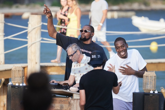 Devin Booker i Kevin Durant, gwiazdy amerykańskiej drużyny koszykówki, mistrzów olimpijskich, spacerują z przyjaciółmi po plaży w St Tropez.
