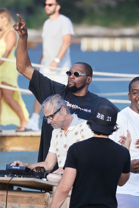 Devin Booker i Kevin Durant, gwiazdy amerykańskiej drużyny koszykówki, mistrzów olimpijskich, spacerują z przyjaciółmi po plaży w St Tropez.
