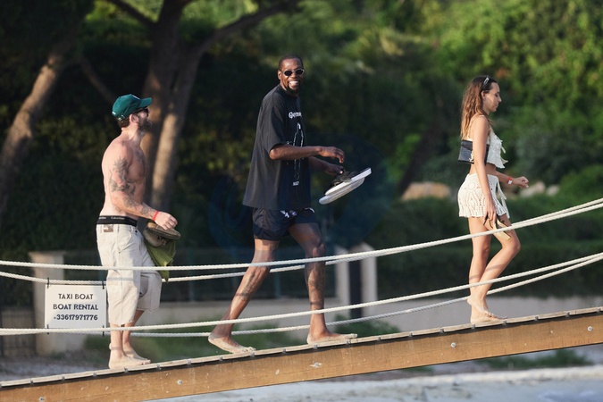 Devin Booker i Kevin Durant, gwiazdy amerykańskiej drużyny koszykówki, mistrzów olimpijskich, spacerują z przyjaciółmi po plaży w St Tropez.