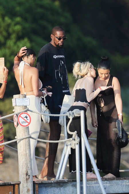 Devin Booker i Kevin Durant, gwiazdy amerykańskiej drużyny koszykówki, mistrzów olimpijskich, spacerują z przyjaciółmi po plaży w St Tropez.