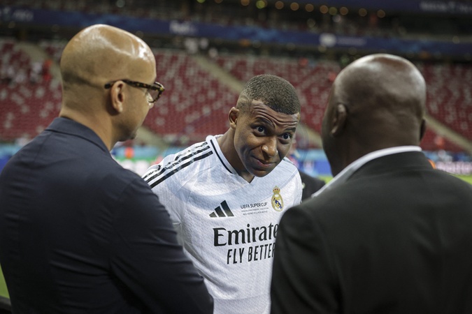 Kylian Mbappé - Match de football "Real Madrid vs Atlanta" lors de la Supercoupe de l'UEFA. Le 14 août 2024 © Elyxandro CEGARRA / Panoramic / Bestimage