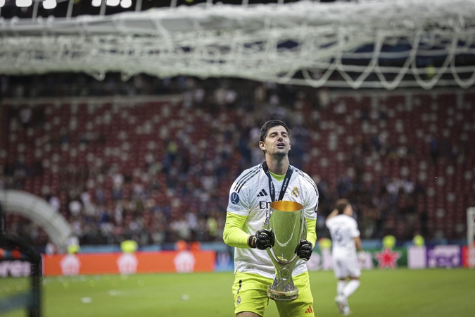 1 THIBAUT COURTOIS (RM) - Match de football "Real Madrid vs Atlanta" lors de la Supercoupe de l'UEFA. Le 14 août 2024 © Elyxandro CEGARRA / Panoramic / Bestimage