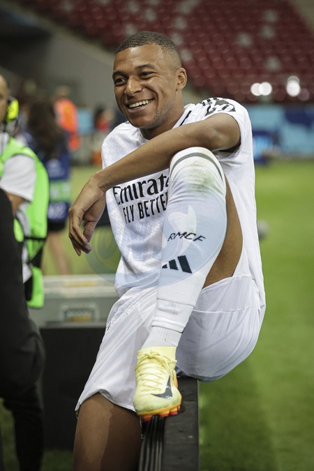 9 KYLIAN MBAPPE (RM) and wilfried mbappe Real Madrid celebrate victory after the UEFA Super Cup 2024 - Match de football "Real Madrid vs Atlanta" lors de la Supercoupe de l'UEFA. Le 14 août 2024 © Elyxandro CEGARRA / Panoramic / Bestimage