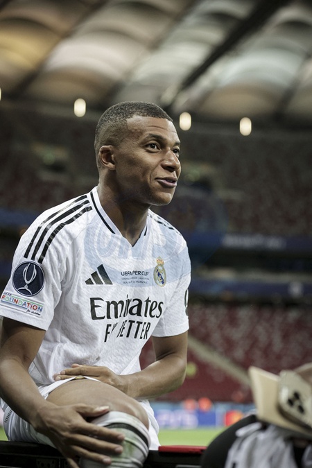 9 KYLIAN MBAPPE (RM) and wilfried mbappe Real Madrid celebrate victory after the UEFA Super Cup 2024 - Match de football "Real Madrid vs Atlanta" lors de la Supercoupe de l'UEFA. Le 14 août 2024 © Elyxandro CEGARRA / Panoramic / Bestimage