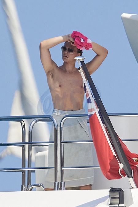 Semi-Exclusif - Prix Spécial - No web - Elizabeth Hurley et son fils Damian, Joan Collins et son mari Percy Gibson passent la journée sur un yacht au large de Saint-Tropez, le 13 août 2024. Si Damian a choisi de se baigner, Elizabeth Hurley semblait hésiter entre plusieurs glaces sur la carte proposée par un marchand itinérant. Récemment, Damian Hurley est passé derrière la caméra pour réaliser le film "Strictly Confidential" avec sa mère dans le rôle principal. Semi-Exclusive - Special Price - No web - Elizabeth Hurley and her son Damian, Joan Collins and her husband Percy Gibson spend the day on a yacht off the coast of Saint-Tropez, August 13, 2024. While Damian chose to go for a swim, Elizabeth Hurley seemed to be hesitating between several ice creams on the menu offered by a traveling vendor. Recently, Damian Hurley stepped behind the camera to direct the film "Strictly Confidential" with his mother in the lead role.