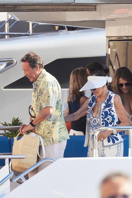 Elizabeth Hurley i jej syn Damian, Joan Collins i jej mąż Percy Gibson spędzają dzień na jachcie u wybrzeży Saint-Tropez.