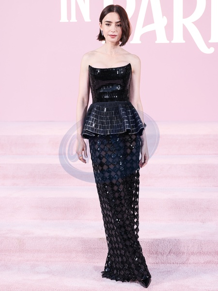 HOLLYWOOD, LOS ANGELES, CALIFORNIA, USA - AUGUST 14: Lily Collins wearing a custom Armani Prive dress arrives at the Los Angeles Premiere Of Netflix's 'Emily In Paris' Season 4 Part 1 held at The Egyptian Theatre Hollywood on August 14, 2024 in Hollywood, Los Angeles, California, United States., Credit:Xavier Collin / Avalon