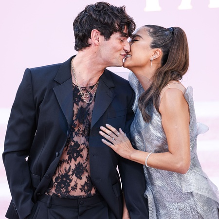 HOLLYWOOD, LOS ANGELES, CALIFORNIA, USA - AUGUST 14: Paul Forman and girlfriend Ashley Park arrive at the Los Angeles Premiere Of Netflix's 'Emily In Paris' Season 4 Part 1 held at The Egyptian Theatre Hollywood on August 14, 2024 in Hollywood, Los Angeles, California, United States., Credit:Xavier Collin / Avalon