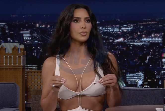 Pictures must credit: NBC Reality superstar Kim Kardashian has told how her kids are trying to set her up on dates with sportsmen and social media influencers. The 45-year-old mother-of-four was quizzed about her love life by US talk show host Jimmy Fallon 49. She wore a revealing all-white outfit that included a bra top and long skirt. Fallon asked her: "What's going on with the love scene? "Are you seeing anyone?” She said she was currently single. She then explained it wasn't for want of her kids trying. She said:” 'It's so funny because my kids try to set me up, like they're ready now, and I'm not.” Kim has four children by ex-husband Kanye West ,47, — daughters North, 11, and Chicago six, and sons Saint, eight, and Psalm, five. She added: "'They're so particular, like they come home, they make lists. "Saint wants me to be with any basketball player or soccer player. " Picture supplied by JLPPA
