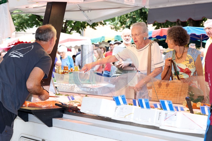 Semi-Exclusif - La reine Margrethe II de Danemark se rend comme tous les ans au marché de Cahors le 17 août 2024. © Jean-Marc Lhomer / Bestimage Semi-Exclusive - Queen Margrethe II of Denmark goes to the Cahors market like every year on August 17, 2024.