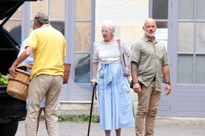 Semi-Exclusif - La reine Margrethe II de Danemark se rend comme tous les ans au marché de Cahors le 17 août 2024. © Jean-Marc Lhomer / Bestimage Semi-Exclusive - Queen Margrethe II of Denmark goes to the Cahors market like every year on August 17, 2024.