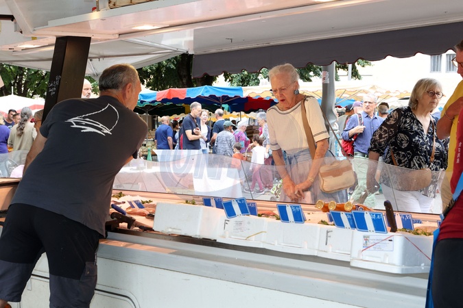 Semi-Exclusif - La reine Margrethe II de Danemark se rend comme tous les ans au marché de Cahors le 17 août 2024. © Jean-Marc Lhomer / Bestimage Semi-Exclusive - Queen Margrethe II of Denmark goes to the Cahors market like every year on August 17, 2024.