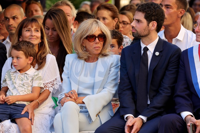 Brigitte Macron. French President Emmanuel Macron and his wife Brigitte Macron take part in the ceremony marking the 80th anniversary of the liberation of the town of Bormes-les-Mimosas with French Secretary of State for Veterans and Memory Patricia Miralles in Bormes-les-Mimosas, Southern France, on August 17, 2024. © Alain Robert / Pool / Bestimage Le President Francais Emmanuel Macron et sa femme Brigitte Macron participent a la ceremonie du 80eme anniversaire de la liberation de la ville de Bormes-les-Mimosas avec la secretaire d etat des anciens combattants et de la memoire Patricia Miralles a Bormes les Mimosas, le samedi17 aout 2024. //ALAINROBERT_1Y8A1408/Credit:Alain ROBERT/SIPA/2408180708