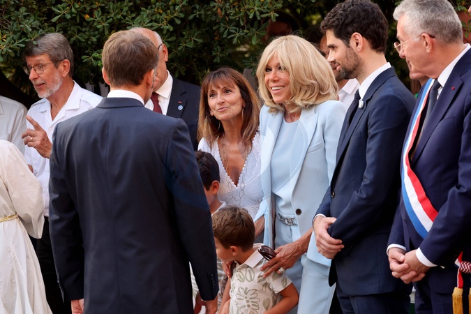 Emmanuel Macron and Brigitte Macron. French President Emmanuel Macron and his wife Brigitte Macron take part in the ceremony marking the 80th anniversary of the liberation of the town of Bormes-les-Mimosas with French Secretary of State for Veterans and Memory Patricia Miralles in Bormes-les-Mimosas, Southern France, on August 17, 2024. © Alain Robert / Pool / Bestimage Le President Francais Emmanuel Macron et sa femme Brigitte Macron participent a la ceremonie du 80eme anniversaire de la liberation de la ville de Bormes-les-Mimosas avec la secretaire d etat des anciens combattants et de la memoire Patricia Miralles a Bormes les Mimosas, le samedi17 aout 2024. //ALAINROBERT_1Y8A2046/Credit:Alain ROBERT/SIPA/2408180711