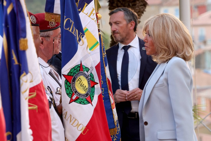 Brigitte Macron. French President Emmanuel Macron and his wife Brigitte Macron take part in the ceremony marking the 80th anniversary of the liberation of the town of Bormes-les-Mimosas with French Secretary of State for Veterans and Memory Patricia Miralles in Bormes-les-Mimosas, Southern France, on August 17, 2024. © Alain Robert / Pool / Bestimage Le President Francais Emmanuel Macron et sa femme Brigitte Macron participent a la ceremonie du 80eme anniversaire de la liberation de la ville de Bormes-les-Mimosas avec la secretaire d etat des anciens combattants et de la memoire Patricia Miralles a Bormes les Mimosas, le samedi17 aout 2024. //ALAINROBERT_1Y8A2092/Credit:Alain ROBERT/SIPA/2408180712