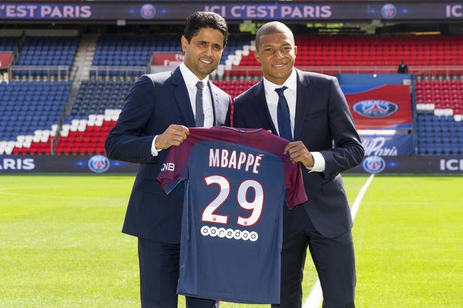 Info - Kylian Mbappé a saisi la LFP et l'UEFA pour réclamer 55 millions d'euros impayés par le PSG - Nasser Al-Khelaïfi - Présentation officielle de Kylian Mbappé au Parc des Princes Paris le 6 septembre 2017. © Pierre Perusseau / Bestimage Official presentation of Kylian Mbappé at the Parc des Princes Paris, september 6th 2017