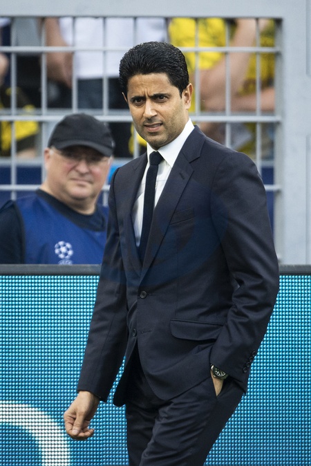 Info - Kylian Mbappé a saisi la LFP et l'UEFA pour réclamer 55 millions d'euros impayés par le PSG - Nasser al-Khelaïfi - People dans les tribunes de la demi-finale aller de Ligue des champions entre le Borussia Dortmund (1-0) face au PSG à Dortmund en Allemagne le 1er mai 2024. © Cyril Moreau/Bestimage People in the stands of the Champions League semi-final first leg between Borussia Dortmund (1-0) against PSG in Dortmund, Germany on May 1, 2024.