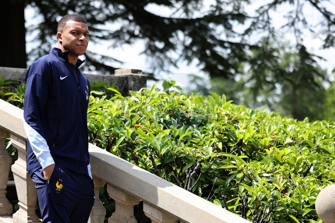 Info - Kylian Mbappé a saisi la LFP et l'UEFA pour réclamer 55 millions d'euros impayés par le PSG - Kylian Mbappé - Le président français, Emmanuel Macron se rend auprès de l'équipe de France masculine de football, au Centre National du Football de Clairefontaine, à Clairefontaine-en-Yvelines. Le 3 juin 2024. © Stéphane Lemouton / Bestimage French president at the National Football Center in Clairefontaine. On June 3rd 2024
