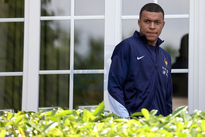 Info - Kylian Mbappé a saisi la LFP et l'UEFA pour réclamer 55 millions d'euros impayés par le PSG - Kylian Mbappé - Le président français, Emmanuel Macron se rend auprès de l'équipe de France masculine de football, au Centre National du Football de Clairefontaine, à Clairefontaine-en-Yvelines. Le 3 juin 2024. © Stéphane Lemouton / Bestimage French president at the National Football Center in Clairefontaine. On June 3rd 2024
